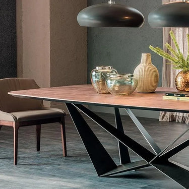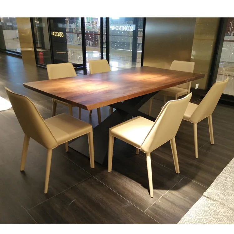 Premium Solid Walnut Rectangular Dining Table with Architectural Metal Base