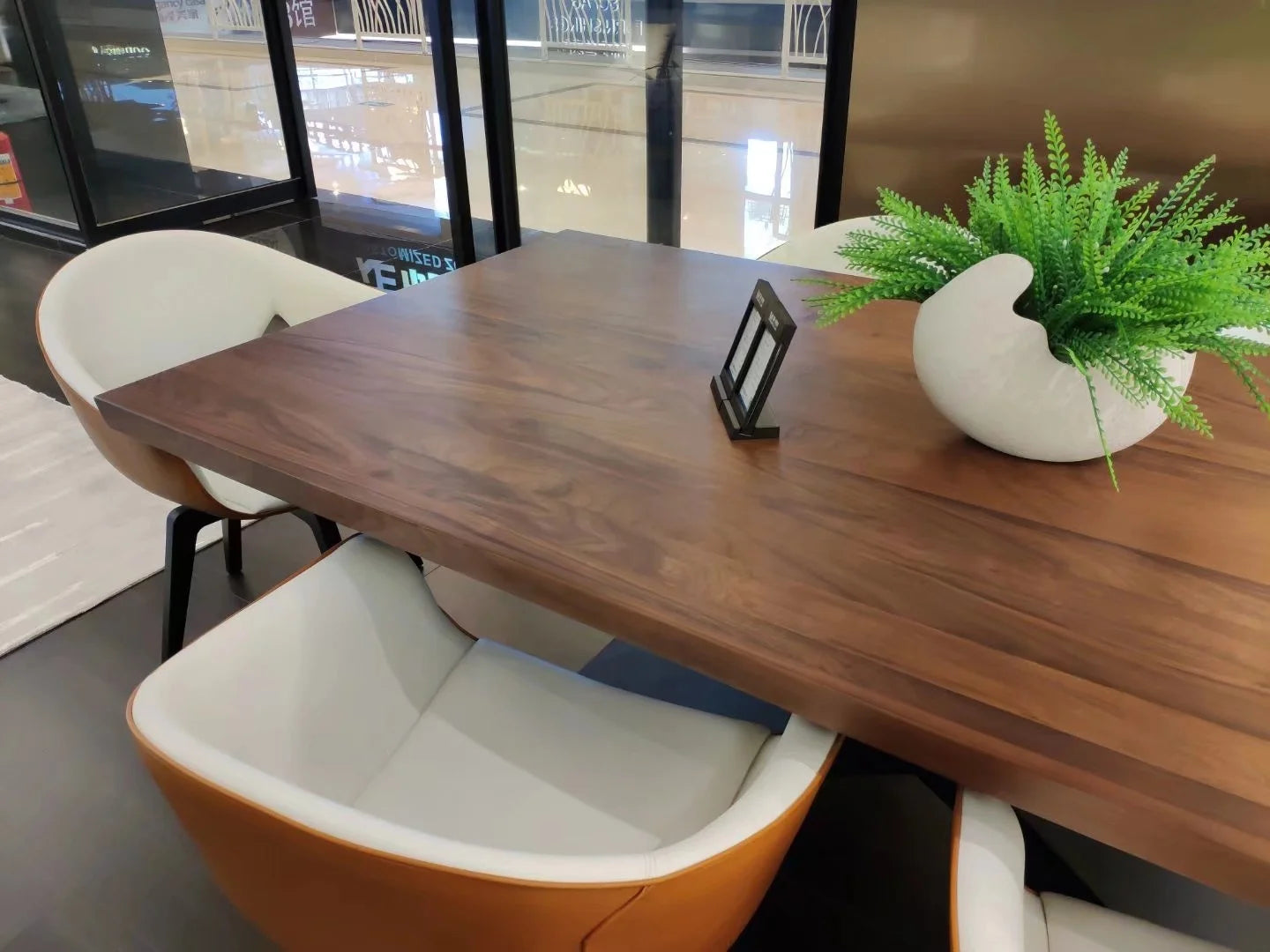 This project-grade dining table features a 100% solid walnut top finished with natural oil, paired with a robust matt black iron base for maximum durability in high-traffic hospitality and retail environments. Designed for large-scale commercial projects and high-end residential furniture applications, the Italian-inspired silhouette offers a sophisticated aesthetic suitable for premium fit-outs and custom commercial joinery requirements. Each unit is meticulously handcrafted to ensure structural integrity and compliance, providing a scalable solution for architects and interior designers seeking longevity in commercial furniture. The minimalist rectangular profile and natural wood grain enhance any architectural space, from boutique hotels to corporate boardrooms.