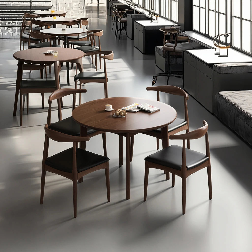 Home Premium Solid Wood Round Table and Structural Seating for Commercial Fit-outs