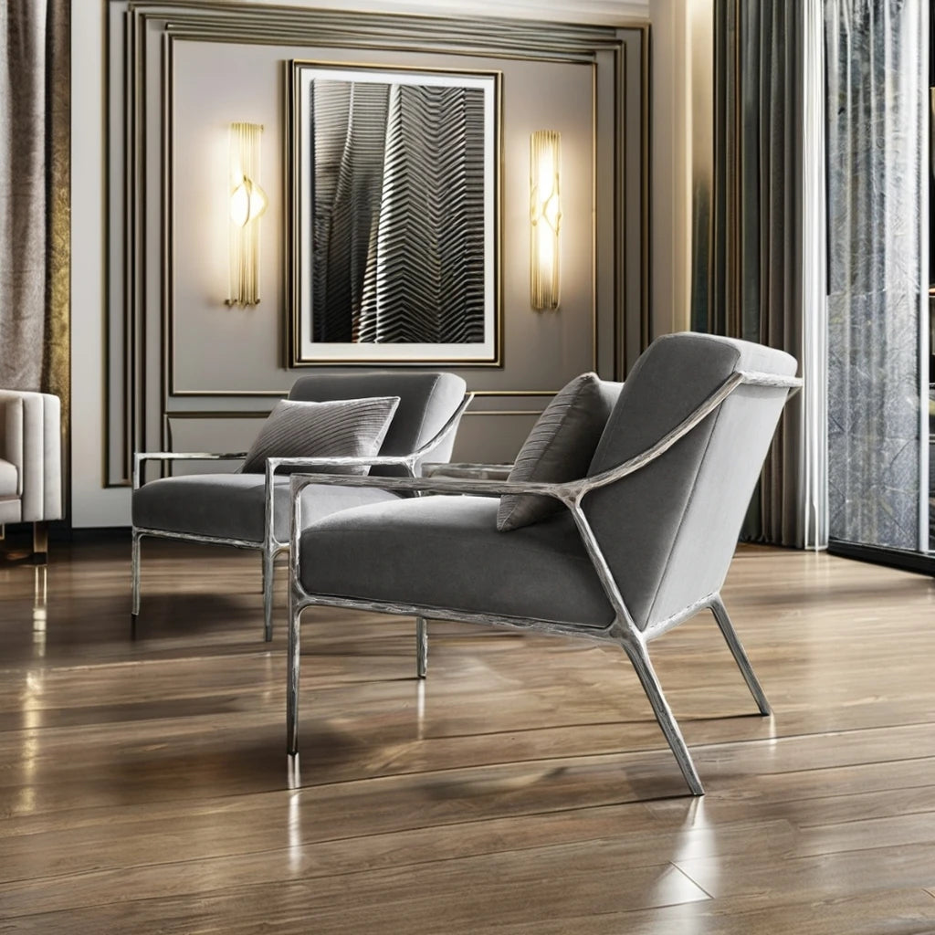 This project-grade armchair features a kiln-dried wood frame and a durable metal base engineered for high-traffic commercial environments. The internal structure utilizes eight-way hand-tied double-coil steel springs to ensure long-term structural integrity and consistent support. High-density foam cushions wrapped in premium feathers provide superior comfort for upscale hospitality and retail settings. Each unit is precision-manufactured with double-doweled joints to meet the rigorous demands of large-scale architectural projects.