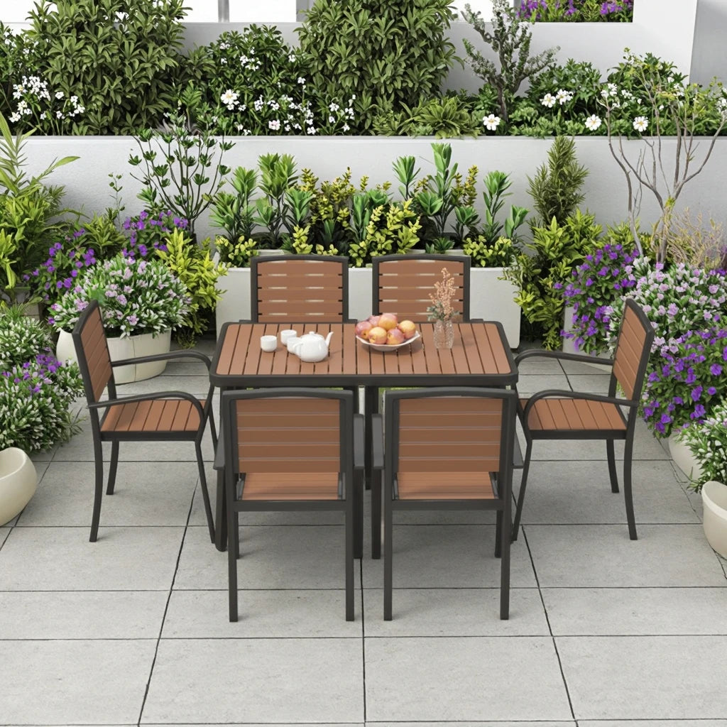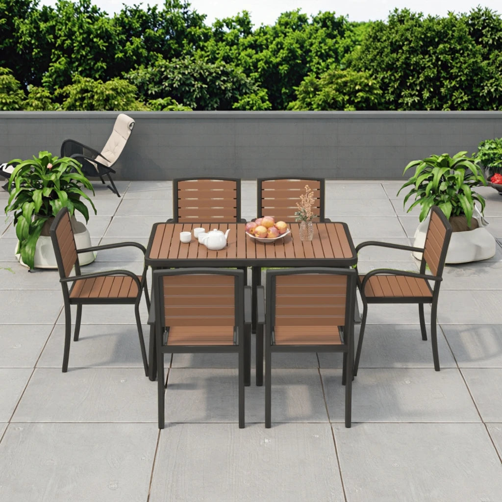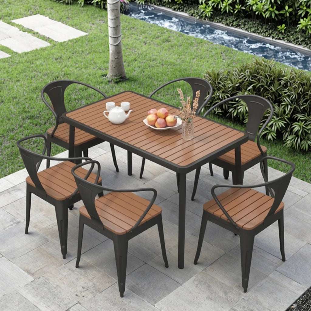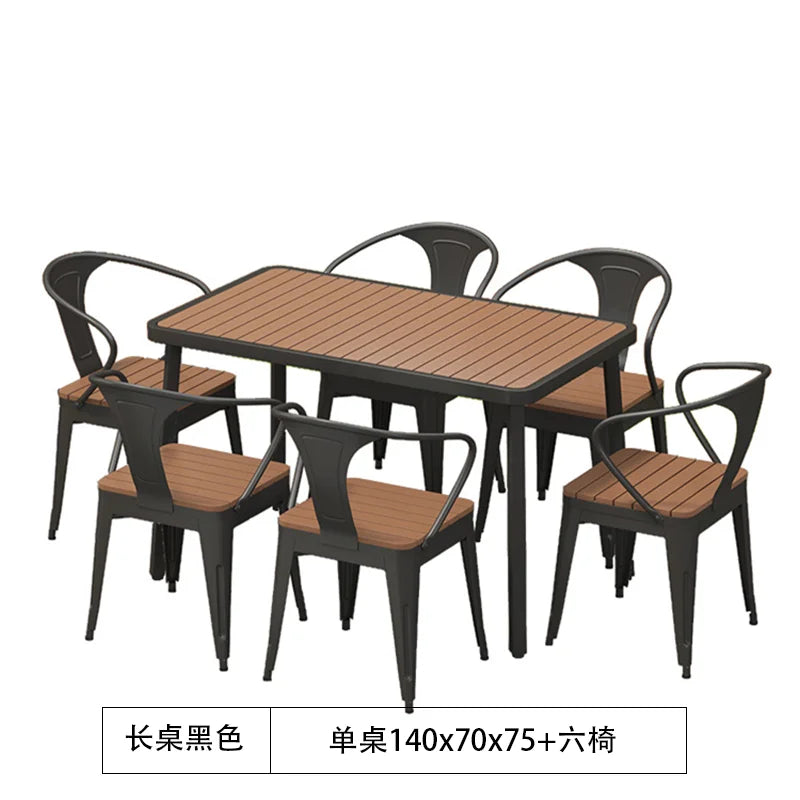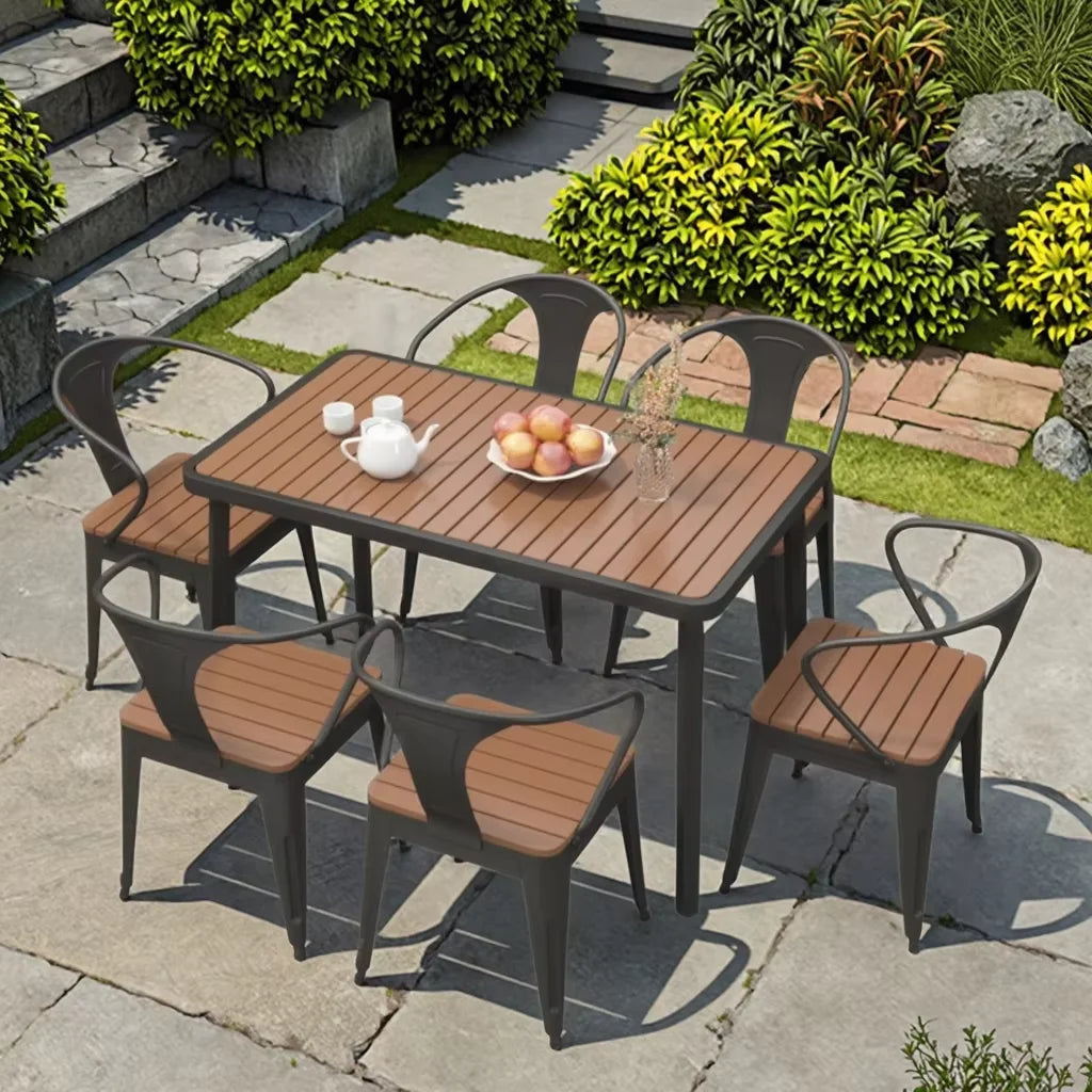 Home Project-Grade Industrial Solid Wood and Iron Outdoor Dining Table Set