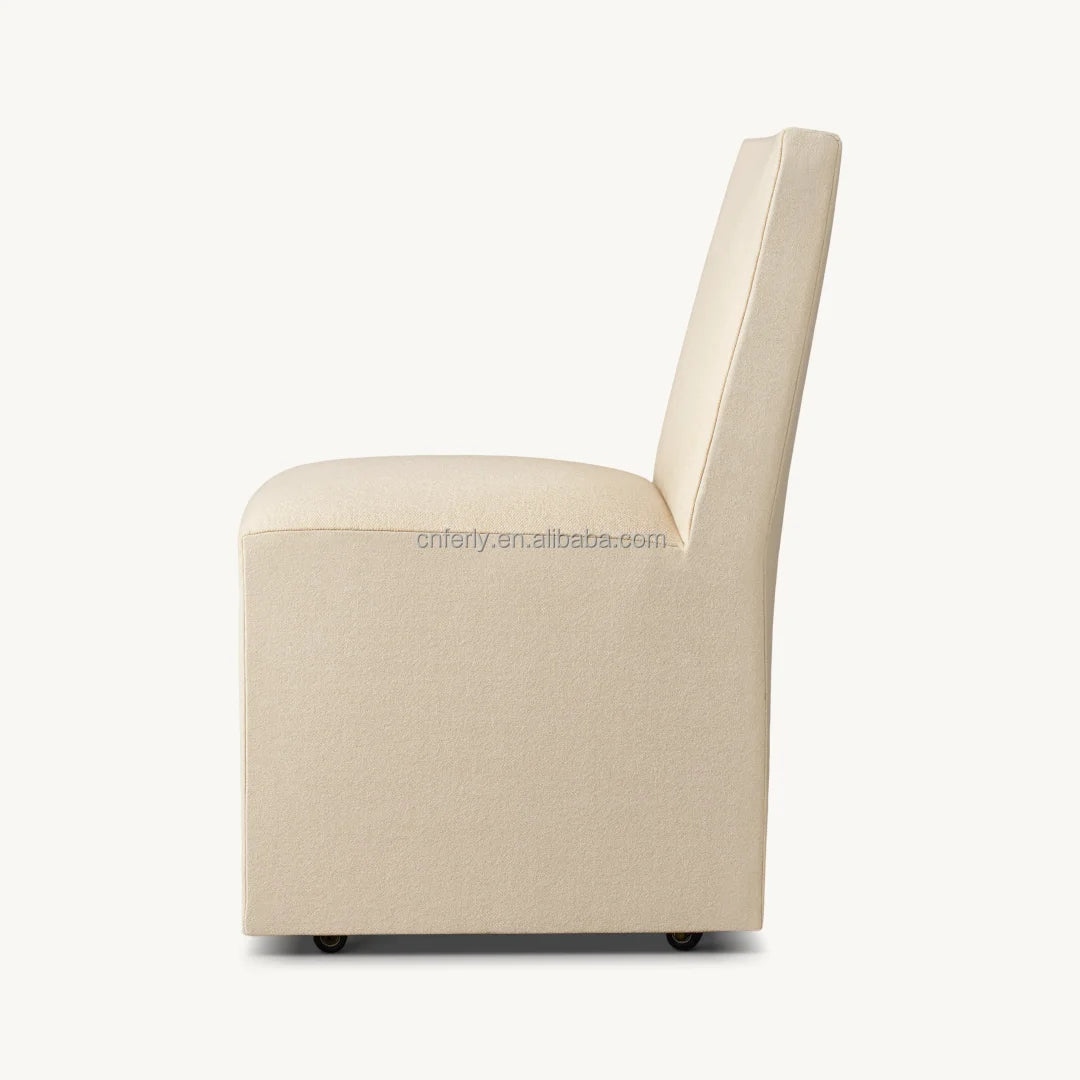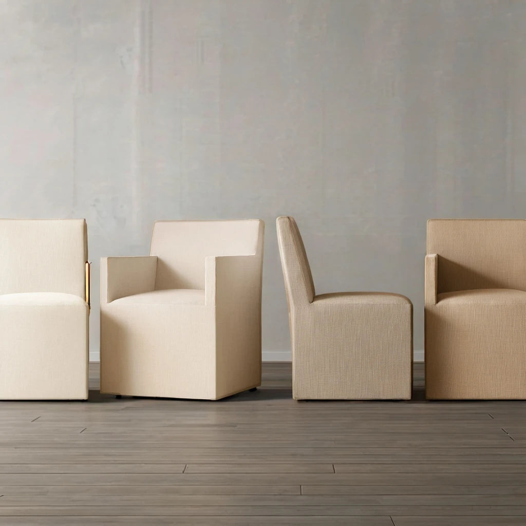 This project-grade armless side chair features a hand-forged solid wood frame engineered for high-traffic commercial environments. The seat and backrest utilize high-resiliency foam padding to maintain structural integrity and ergonomic support throughout extended use. Its sophisticated fabric upholstery provides a premium finish suitable for luxury retail, hospitality, and corporate interior deployments. This custom-manufactured seating solution meets the rigorous durability and aesthetic requirements of large-scale architectural fit-outs.