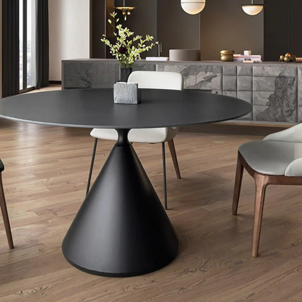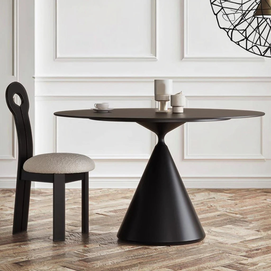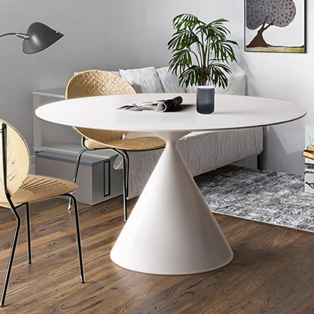 Solid Wood Round Commercial Dining Table with Architectural Iron Base